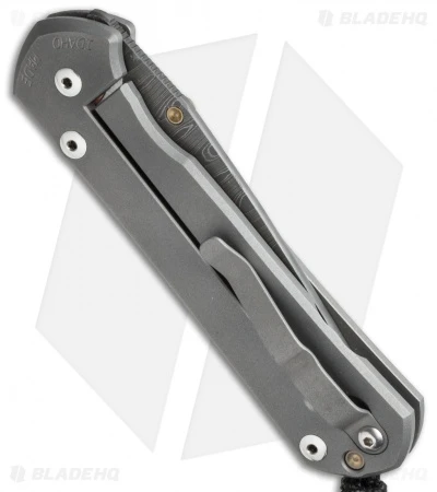 This Large Sebenza 21 features a satin finished titanium handle face with a Unique Graphic. The framelock and pocket clip are bead blast finished. Gold thumb lug and spacer. This Sebenza has a Devin Thomas Raindrop Damascus steel blade. Includes lanyard and leather pouch.