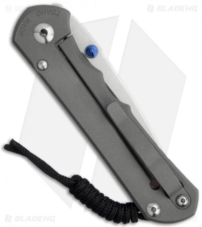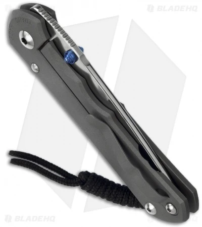 This Sebenza 25 has a stonewashed S35VN steel blade with thumb lugs. The titanium handle and pocket clip are all bead blasted.