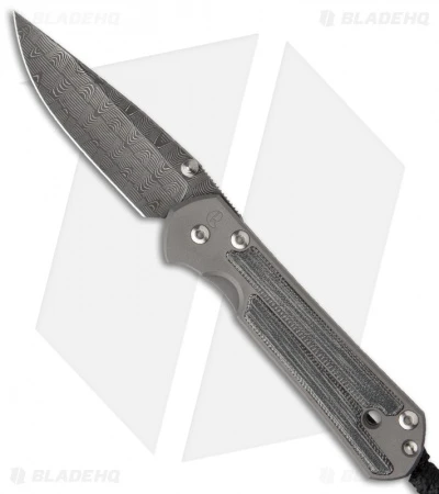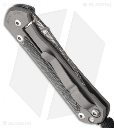 This Small Sebenza features a stainless steel Devin Thomas “Basketweave” Damascus blade. Bead blasted titanium handle with Micarta inlays. Silver colored thumb stud and spacer. Includes lanyard and titanium pocket clip. Actual Damascus blade may differ slightly from the one pictured.